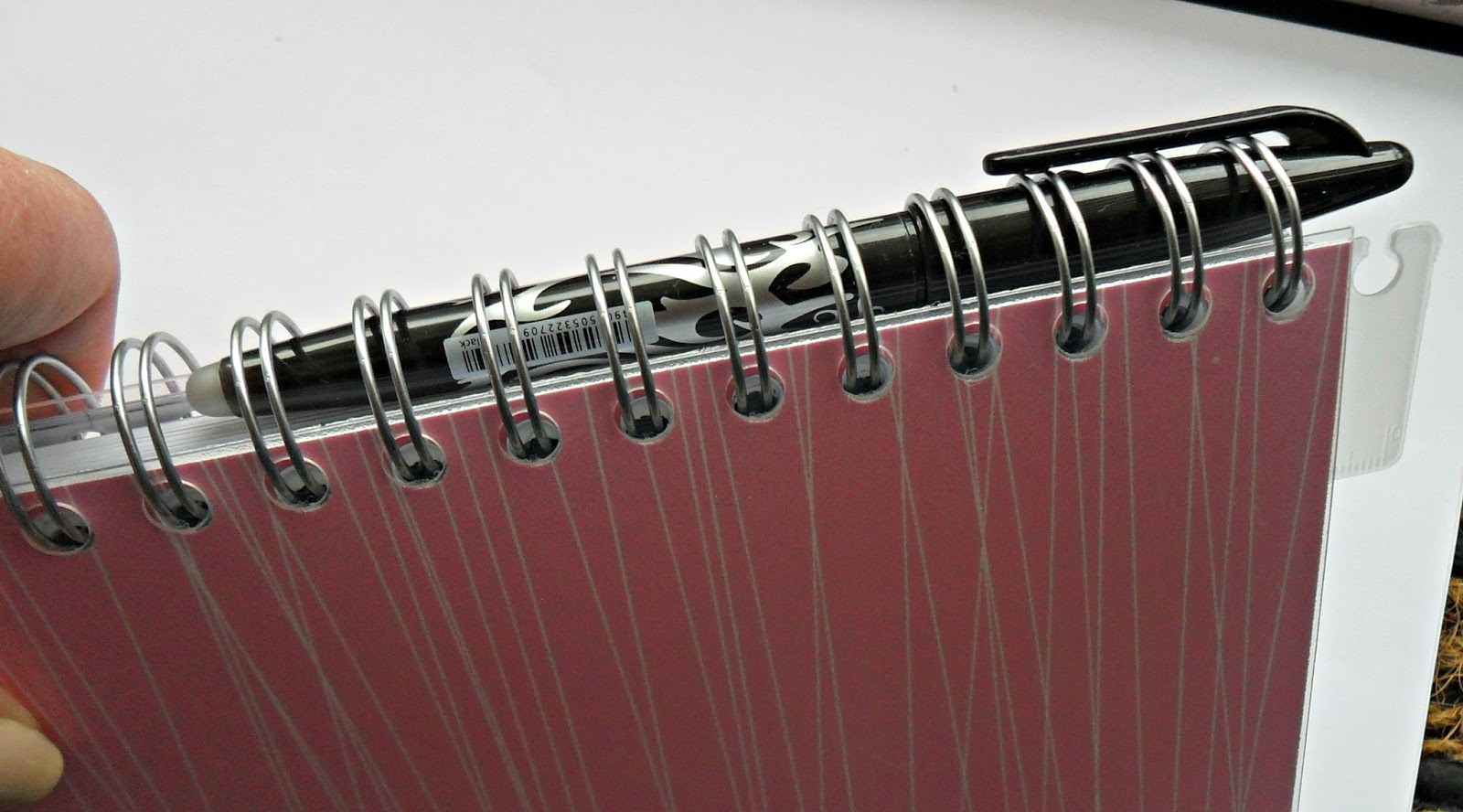 Still here? Then you might as well hear about Pilot Frixion erasable pens. I bought a set of 3 in Easons reduced to €6.99. Love these pens, they are so easy to erase. And they have a clip which means I can store it tidily in the coils of the planner: